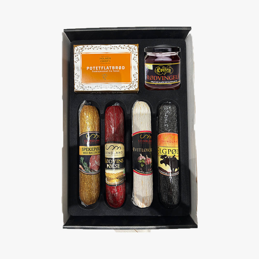 Gi bort en smakfull juleopplevelse med Den perfekte julegave. Gaveesken inneholder fire tradisjonsrike spekepølser, sprøtt flatbrød og smakfull gele, perfekt til julebord og festlige anledninger. Dette er en ideell gave til matelskere som setter pris på norsk tradisjonsmat, og den passer like godt som gave til venner, familie eller kolleger. Kombinasjonen av spekemat, flatbrød og gele gir en rik smaksopplevelse som kan nytes året rundt, men som virkelig skaper julestemning.